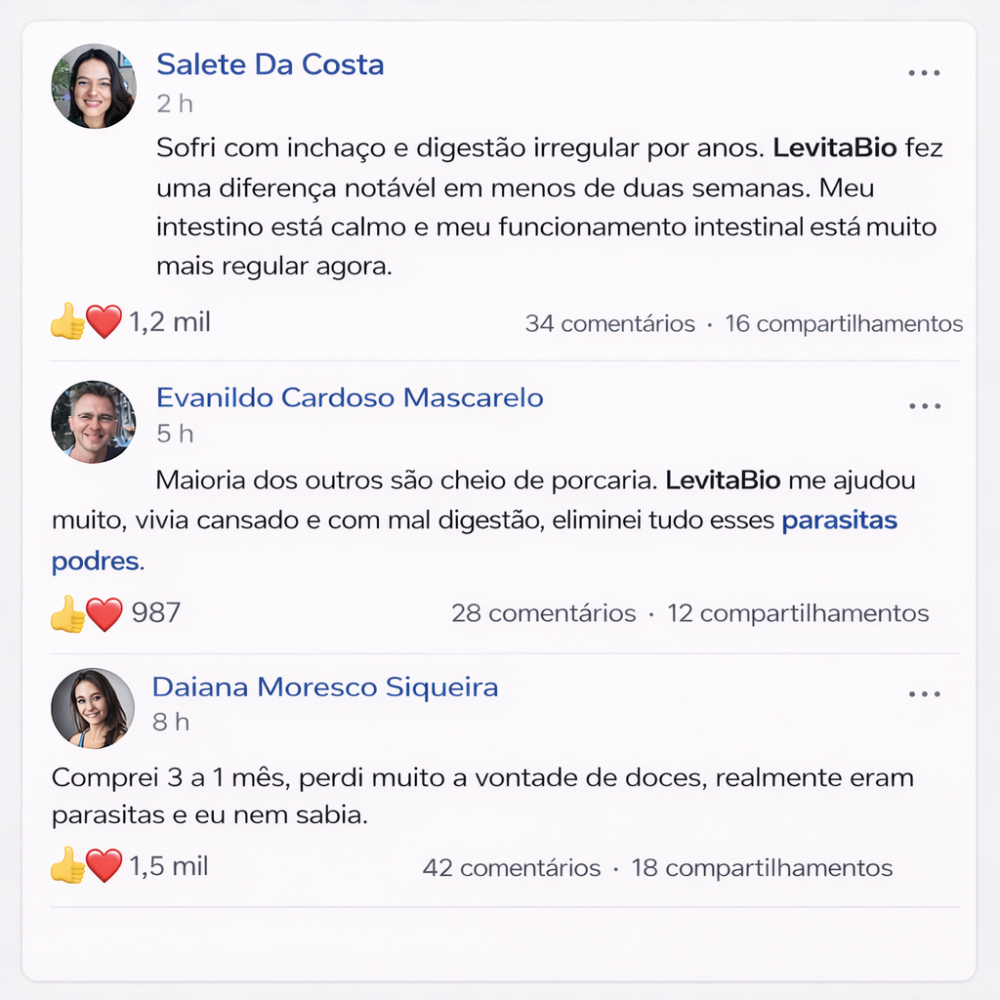 Se você está cansado de ficar doente em todas as estações, de sofrer com inchaço ou problemas digestivos, ou de depender de suplementos agressivos, o LevitaBio foi feito para você.