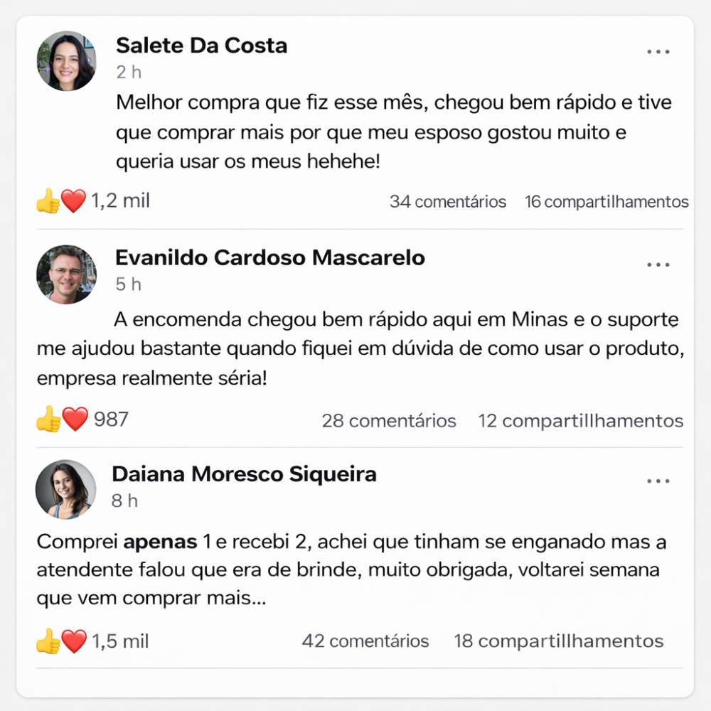 ⚡ Resultados Rápidos Alívio em apenas 20 minutos de uso por dia, sinta a evolução a partir do primeiro dia de uso. |